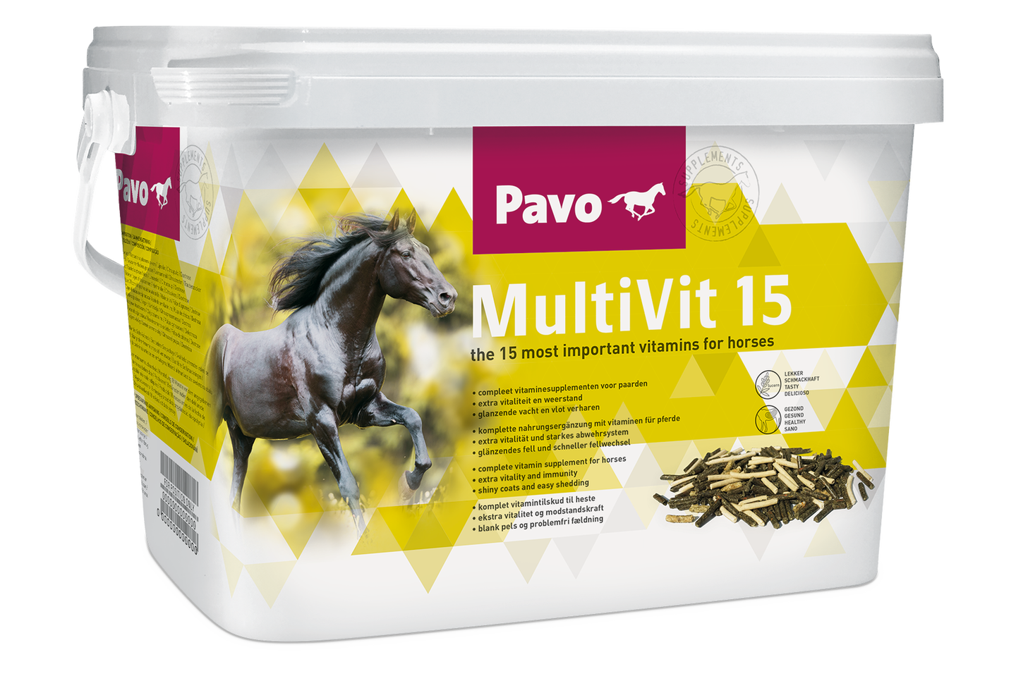 Puedes darle un empujón a tu caballo sénior si tiene problemas para mudar. Por ejemplo, con Pavo MultiVit. Pavo MultiVit contiene una amplia gama de vitaminas, antioxidantes y prebióticos y, por lo tanto, es un verdadero "impulso" para tu caballo.