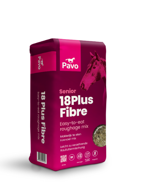 En fungerande tandfunktion är avgörande för matsmältningen. Hästar måste mala ner sitt foder i bitar som är mindre är 1 cm för att tarmarna ska fungera optimalt. Om de inte längre kan göra det så kommer det att resultera i magprobem, till exempel fri fekal vätska, kolik, diarré eller förstoppning. Pavo 18Plus Fibre passar om din häst har nedsatt tandfunktion, alla fibrer i den har en maximal längd om 3 cm.