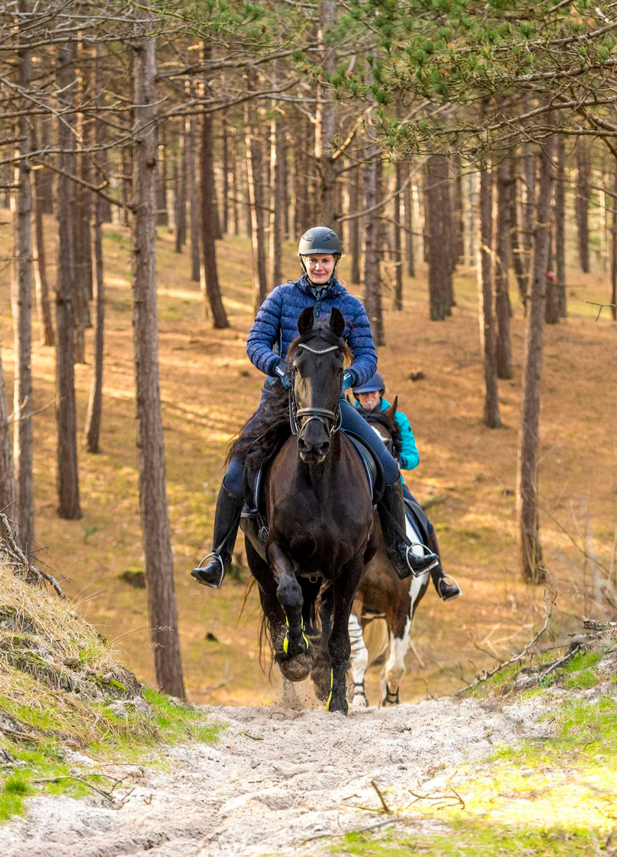 "Als je paard veterinair fit is, kun je gerust drie keer per week een half uur tot driekwartier rijden. Zo kun je de spieren opbouwen en behouden. Het is niet verstandig om maar één keer per week te rijden en dan direct een lange buitenrit te maken. Rijd liever korter en vaker. Je bent verplicht om je paard fit genoeg te maken voor zo’n lange buitenrit. Ga niet alleen in het weekend op pad, maar geef je paard doordeweeks voldoende training.”